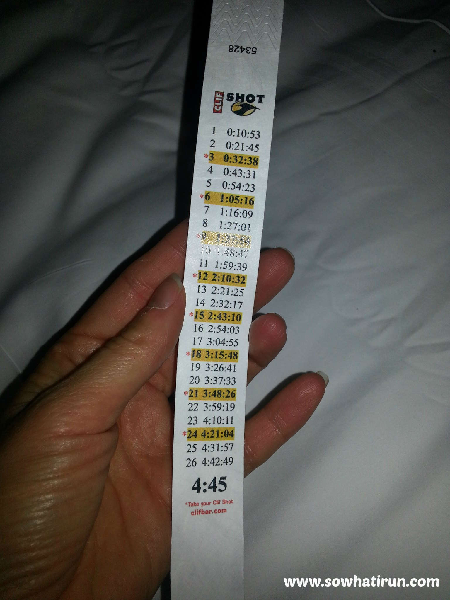 I’m going to start with the 4:45 group and hope that I can keep up. One of my other running friends picked up a pace bracelet for me at the expo. I totally missed it yesterday, so I’m glad she picked it up.
