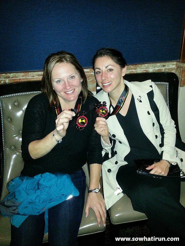 - Post-race meal. Kendra and I treated ourselves to steak dinners at Ruth’s Chris Steakhouse. And yes, we wore our medals.