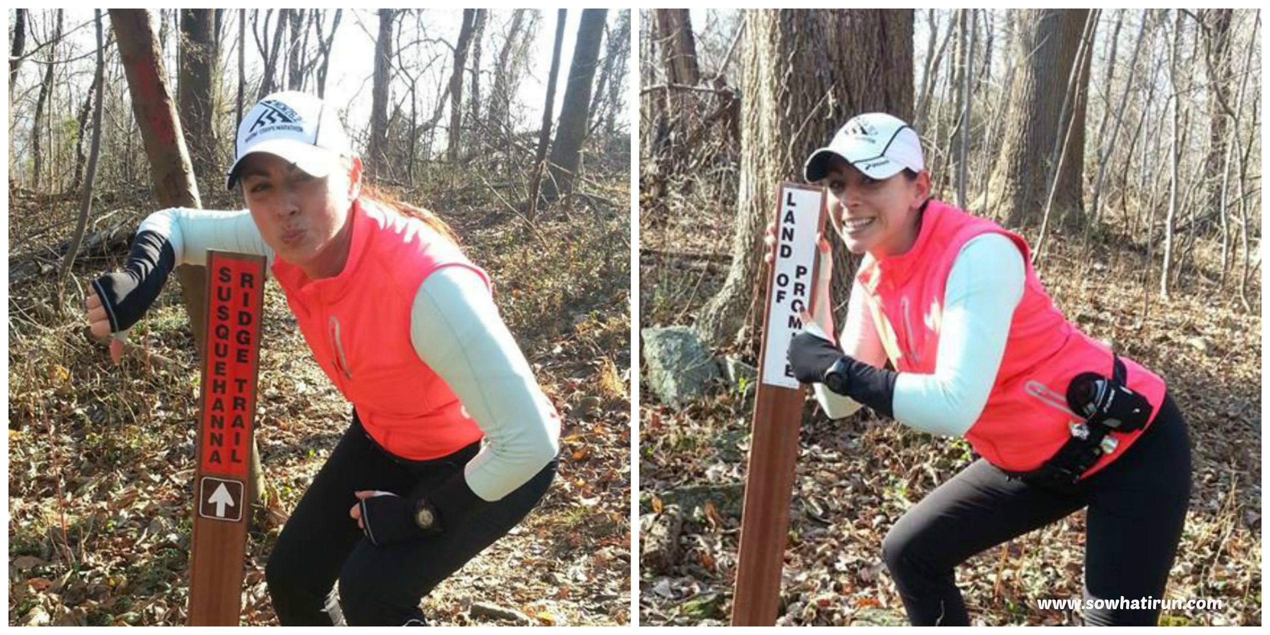 We found the white trail, “Land of Promise” and followed that back to where we started. The white trail was GREAT! We were actually able to run most of it and you know what…it was fun!!! So while the red trail got a thumbs down from me, the white trail got a thumbs up! yes and no trail