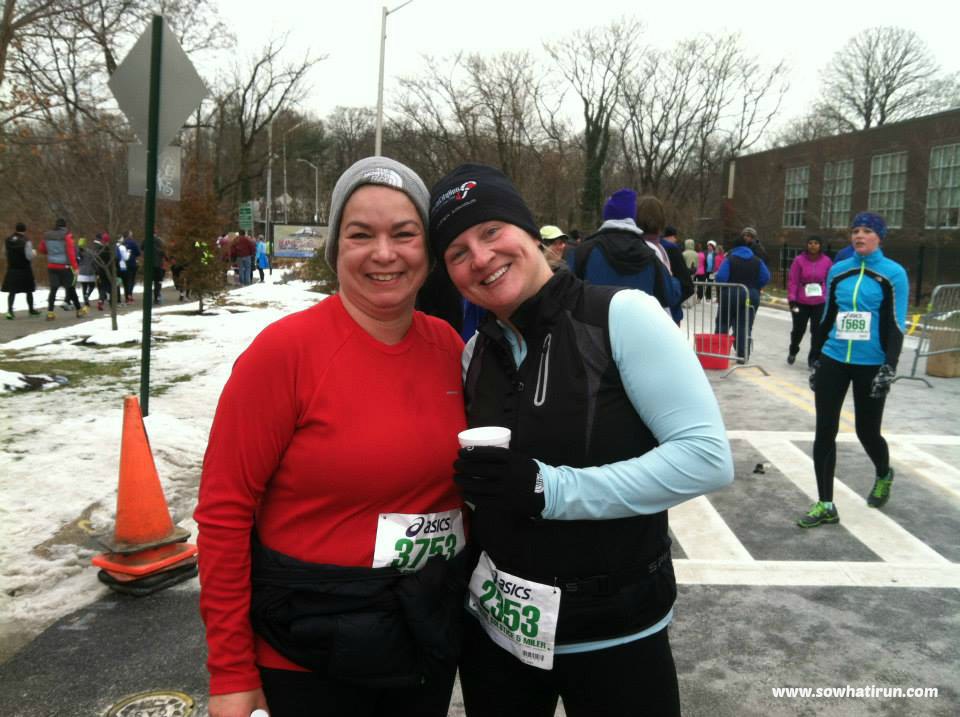 After the race, we went back into the incredibly crowded tent to get some drinks and food! I skipped the typical bananas and cookies and headed strait for Boordy Vinyards Wassail. I remembered it from last year, so I was making a B line straight to get it again this year…ended up drinking 3 cups. I missed out on Zeke’s Coffee, but if you ever get the chance to try it, it is THE BEST coffee around! The soup was fabulous. I think it was a vegetable bean soup and it was hot, hardy, and totally hit the spot on a cold day.