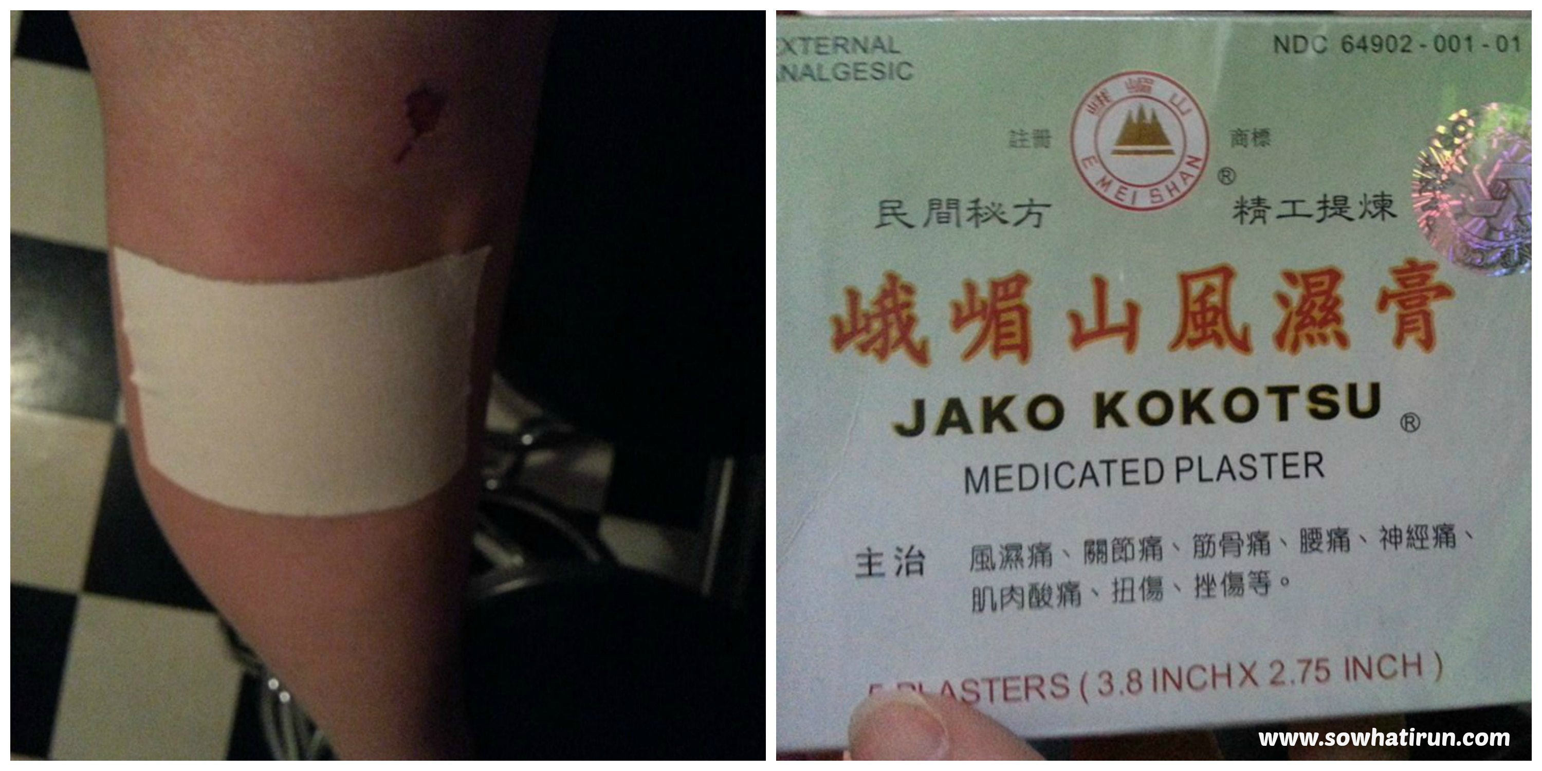 A day later and my husband is still calling me hop-a-long. I know there’s nothing seriously wrong with it, but my leg, ankle, and knee are badly bruised and swollen and I still have a limp. My mom insisted that I put this stinky Chinese patch on one of my lumps. Did it give me relief? I don’t think so, but I can tell you that I stunk to high heavens all day and night!