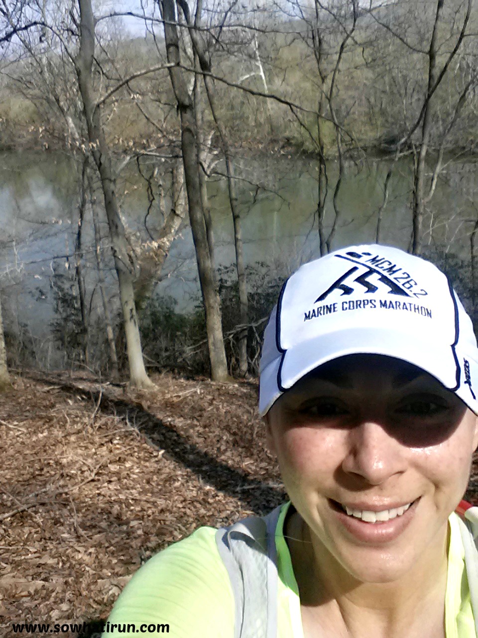 We got in about 2 hours of running for a total of 7.83 miles. I know, I know…only 7.83 miles?! We were trying to follow the race course map and got a little turned around here and there. But, that’s why you check out the course before race day, right? Oh, and we did bump into this guy. This was the first time I ran into a snake on the trails. I guess that’s the benefits of training in the winter. I complained about the snow and ice, but I didn’t have to worry about snakes and ticks. <sigh>