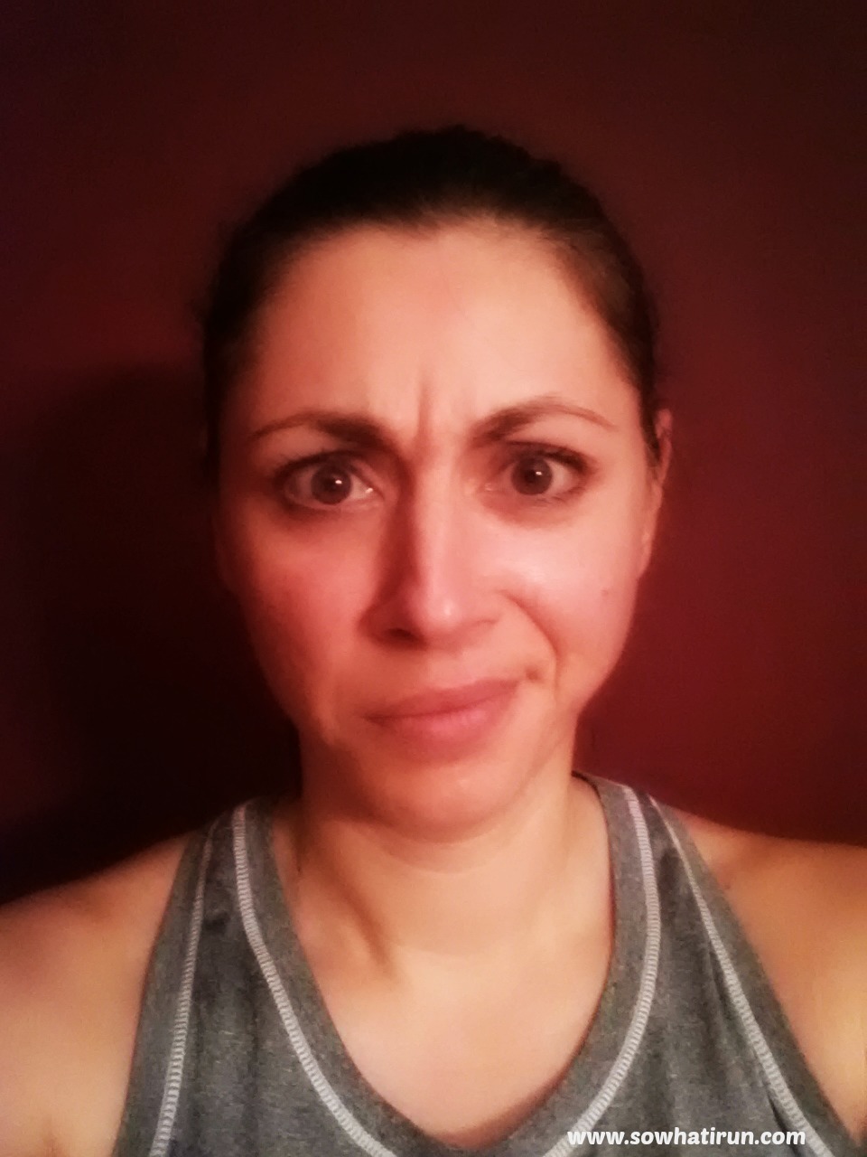 The techie was kind enough to stay so that I could try to get a hold of someone with a badge to let me back in using his phone. After Googling and calling the building management, security service, and cleaning service, I was stuck. Crap. Nothing to do now but talk about running. So I talked about running and he, who was a weight lifter, gave me every excuse why not to run and how he would like to run a marathon, but didn’t want to hurt his knees….wahh wahhhh…you know how this goes. Every rebuttal was met with an excuse. I was not amused, I was anxious to get out of there, and I was getting annoyed. While we bantered back and forth I realized that in my haste in getting dressed my booby pad in my sports bra had gotten squinched up in a ball. There I stood with one wrinkly squinched up booby pad trying to convince this guy he should run a marathon. Great. Oh and did I mention that my newly mixed Tailwind drink was just sitting in the office kitchen, not getting used? <sigh>