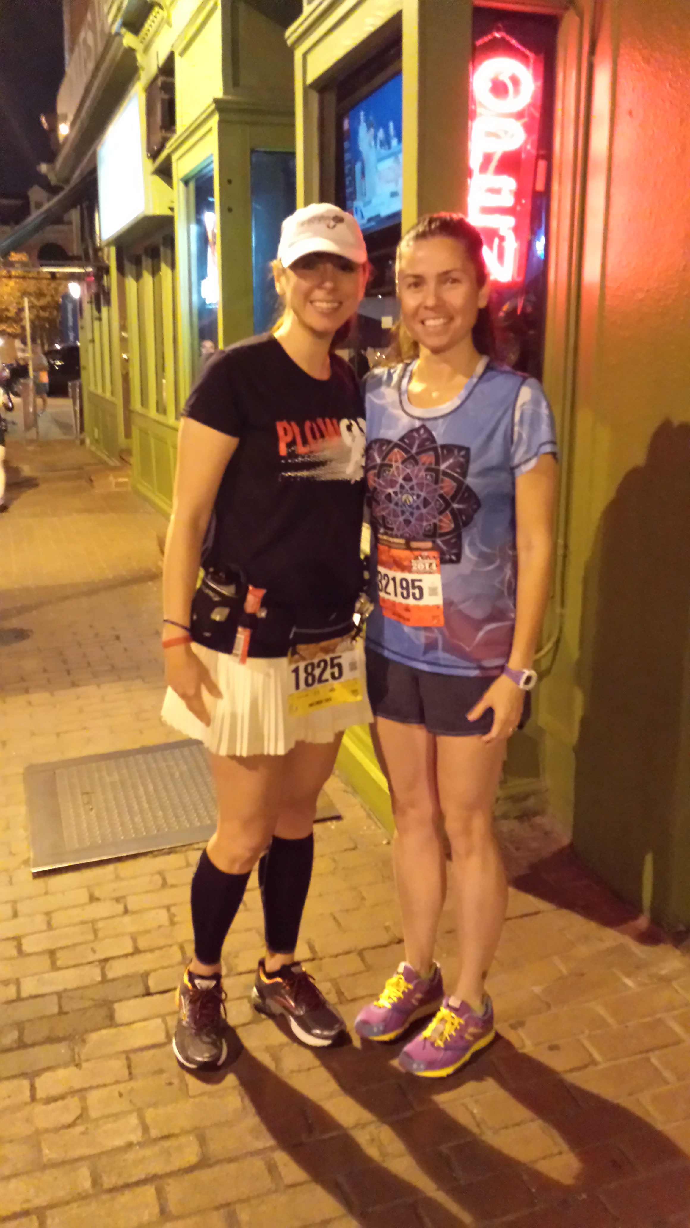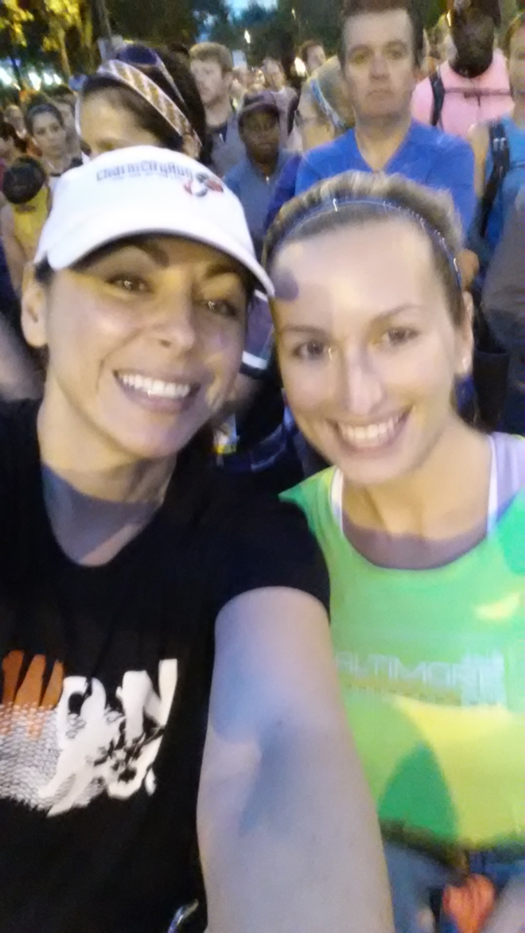 We lined ourselves up in front of the 4:45. We figured it would helps us start out at a slow steady pace before we kicked it into high-gear. I bumped into a fellow SWIR reader, Alyssa, who was running her first marathon and I, of course, had to take a selfie (She ran a sub-5 marathon!). I’m always starstruck when someone recognizes me. They say hello and I get mush mouth and lose my manners and get that “huh, me? you know me?” look across my face. I act like a blubbering idiot. I’m just humbled that there are like-minded folks out there who enjoy my weirdness. YOU ROCK!