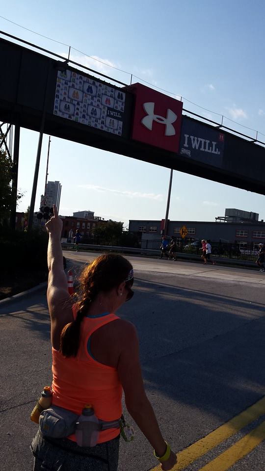 We passed through Under Armour and stopped…yes, we stopped…and took pictures. Why would you stop if you’re shooting for a PR? Because there was an awesome shot to be had. But the best shot came from a quick snapshot of Megs pointing to the “I Will” sign. Just perfect. But by this point we were feeling it.