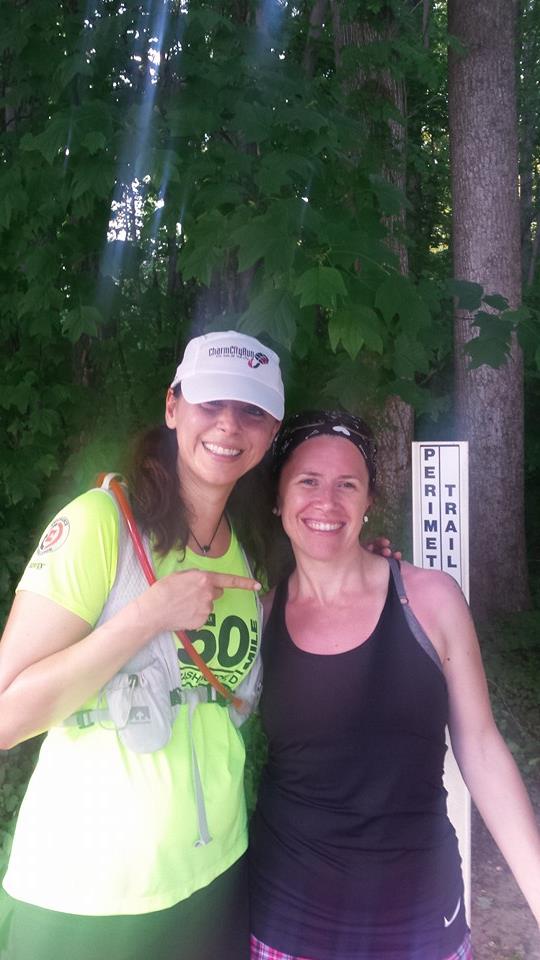 - You find angels where you least expect them. What my friend Theresa did for me that day was unbelievable. I can’t begin to tell you the gratitude I have for having her in my life. I met her in high school and after losing touch, we reconnected through Facebook and bonded through our love of running. While most of our interaction is through social media and she doesn’t exactly live next door, we are able to catch a run or two together here and there. Well let me tell you, my dear friend went above and beyond the call of duty. There was not one other person that offered to help the way she did and I am forever in her debt. She showed up at 5:30 a.m. with EVERYTHING you could think of that would be at an aid station. It was crazy! A cooler full of food, rice crispy treats, soda, oranges, cookies…medical shit…you name it, she had it. She ran the first loop and a half with me and then she sat there until 10:00 p.m. in the hot sun waiting for me after each loop, making sure I was safe, making sure I survived. And what she did towards the end of my run almost brought me to my knees. As the sun went down during my last loop, the woods got dark…like pitch black dark. I sent her a quick text message to let her know I was freaking out. At about mile 50, I saw a glimmer of a light and I heard her voice “Sandy, it’s me!” Seriously, if I had the ability to cry, I would’ve broken down right there. Later she told me that she could see the panic and fear in my face when she saw me out there, and I don’t doubt that one bit. When she told me she cleared the spiderwebs for the last 3.5 miles and I would be good to go, my eyes teared up. I cannot begin to tell you the relief I felt at that moment. Once again, when I needed someone out of desperation, they appear out of no where. She was a godsend. I had a lot of folks support me virtually that day, and a handful come out to run with me, but what Theresa did was above and beyond and I’ll never be able to repay her.