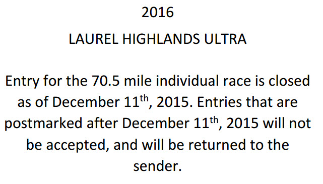 It was perfect! It’s a 70.5 mile WS qualifier in Pennsylvania and it’ll happen on June 11th. So, earlier this evening I went to print out the race application (mail in registration only) and was greeted with this message…